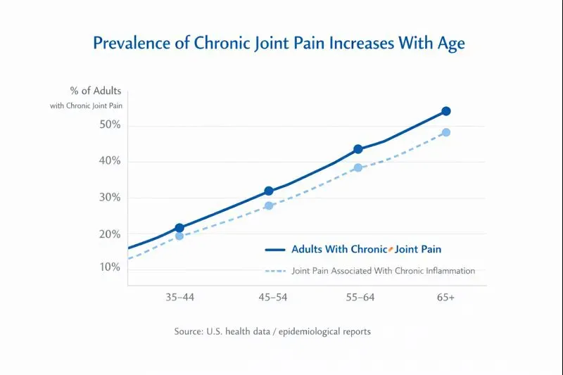 Chronic joint pain has quietly become one of the most widespread physical complaints in the United States. According to health data cited by major medical institutions, an estimated 40% of American adults report persistent joint stiffness, swelling, or recurring pain by age 55 — and this percentage continues to rise each year.